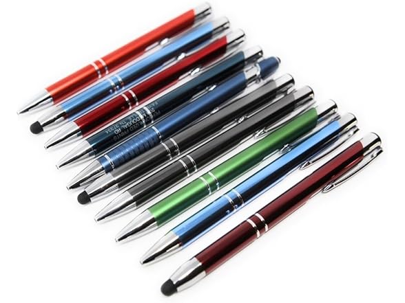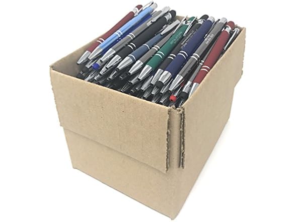 5 lb. Box of Assorted Misprint Metal Retractable Ball Point – Bulk Misprinted Pens, Stylus Tip, Comfort Grips, Wholesale Office Home School Black Blue Ink – Approximately 120 Pens per Box