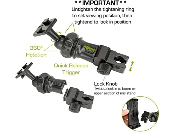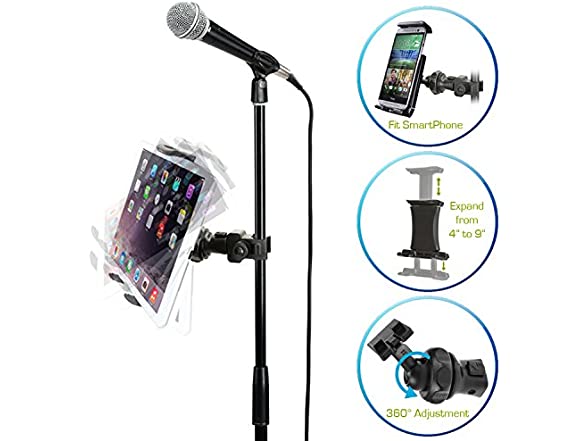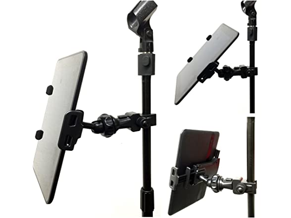 - Securely attaches to upper post of the microphone stand, cymbal stand, boom post or any pole up to 2cm/ 0.75 inch diameter (Mic Stand and Tablet are not included)