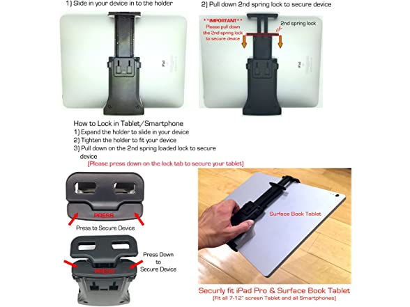 - New Innovative design compatible with all 7" to 12 inch screen size tablet (7" ipad mini to 12.9" ipad Pro) and All Smartphones (ipad Pro, iPad Air, iPad Mini, Galaxy Tab S, Surface Pro 4 3 / iPhone 12 11 XR XS MAX X 8 7 Plus 6s 6 SE Galaxy S21 S20 S10 S9 S8+ Edge LG G6 V20 Note ONEPlus Nexus 7 6 5