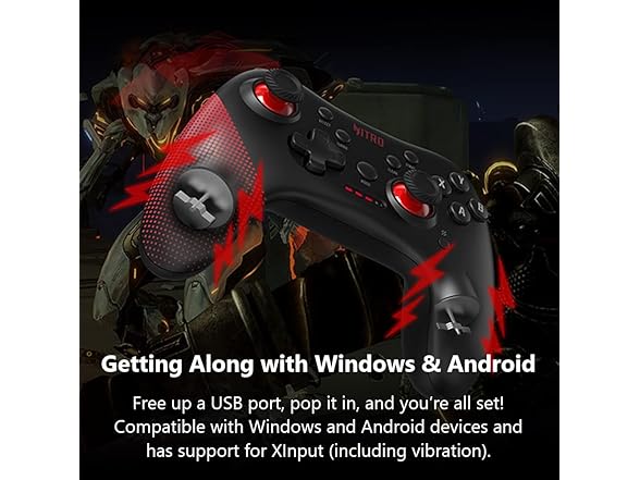 - Getting Along with Windows & Android: Free up a USB port, pop it in, and you’re all set! Compatible with Windows and Android devices and has support for XInput (including vibration).