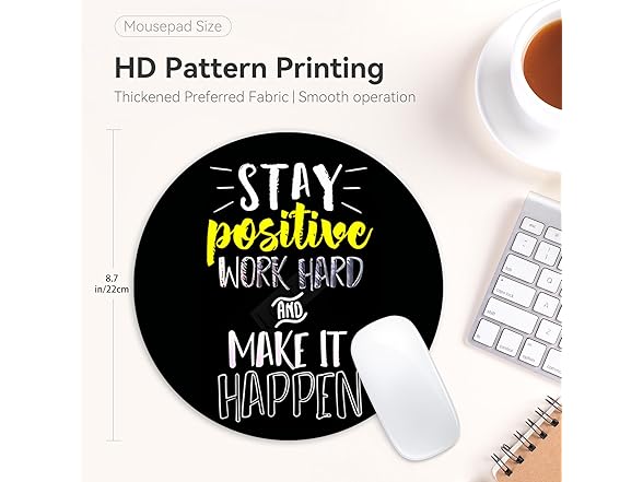 - 【Perfect Size】:Our round mouse pad has been carefully crafted to provide ample space for your mouse movements while maintaining a compact and convenient size. With a diameter of 8.7 inches, it offers just the right amount of surface area for smooth and precise tracking, whether you're working, gaming, or browsing the web.