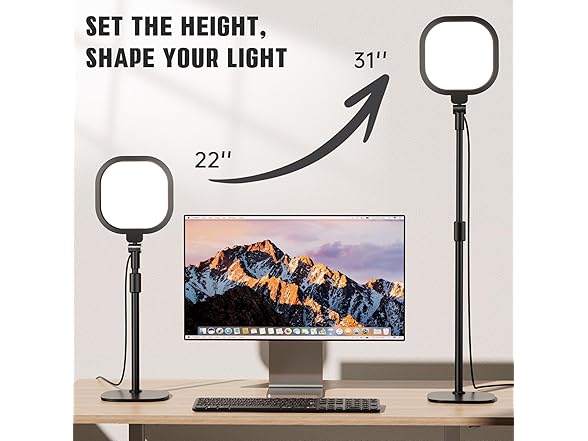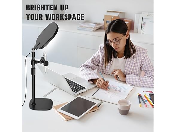 - ADJUSTABLE HEIGHT: LitONES desk ring light is packed with an upgraded, telescoping height adjustment bracket that ranges from 22 to 31 inches, tailor-made to light up your computer desktop like a pro. With a 360-degree rotating lamp head, you can effortlessly direct the light wherever you need it. Whether you're remote working, jumping on a Zoom call, recording a video, crafting, sewing, painting, or live streaming on social media, you'll always be in the perfect light with LitONES