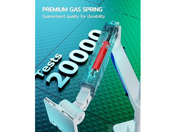 - 【Stability and Durability】Crafted for heavy-duty use, this single minitor arm features a premium build with reinforced aluminum and high-quality steel. Surviving over 20,000 fatigue tests, this monitor mount offers reliable support and stability for ultrawide and heavy duty monitors, ensuring peace of mind for users. The single monitor desk mount features infustrial-grade gas springs, ensuring effortless adjustments