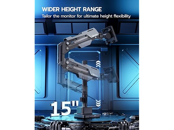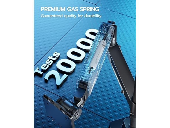 - 【Stability and Durability】Crafted for heavy-duty use, this single minitor arm features a premium build with reinforced aluminum and high-quality steel. Surviving over 20,000 fatigue tests, this monitor mount offers reliable support and stability for ultrawide and heavy duty monitors, ensuring peace of mind for users. The single monitor desk mount features infustrial-grade gas springs, ensuring effortless adjustments