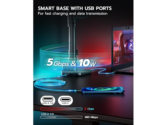 - 【Convenient USB Ports】The dual monitor stand with enhanced USB functionality allows simultaneous charging of two devices. Integrated USB-C and USB-A ports (5V/2A) enable timely charging for your phone, watch, tablet, laptop, or headphones when battery levels are low, ensuring long-lasting peace of mind during use.