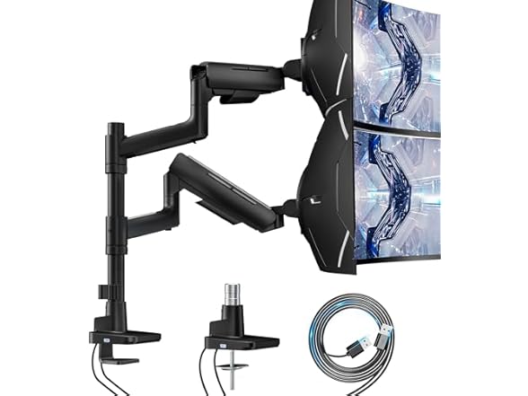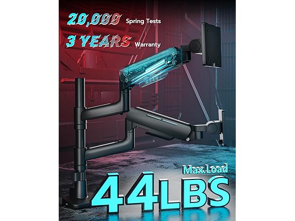 - 【Stable support】This vertical dual monitor stand features industrial-grade gas springs to support heavier duty screens, eliminating the rebound risks associated with traditional mounts and ensuring smoother adjustments. Tested over 20,000 times, this dual vertical monitor mount maintains stability even in fully extended positions, preventing concerns about monitor drops that could damage both your monitor and floor.