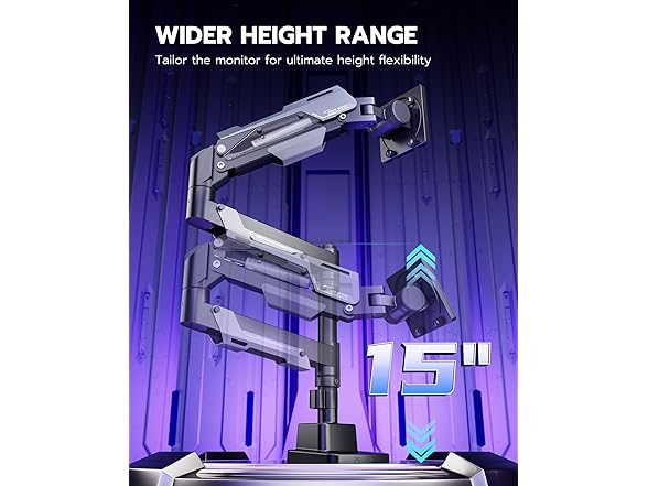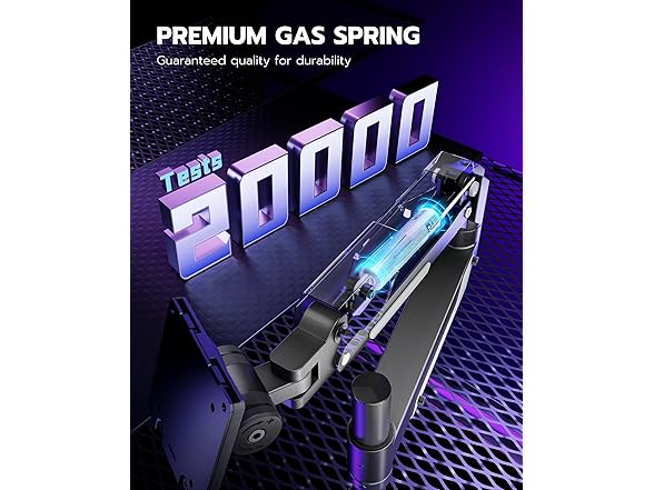 - 【Stability and Durability】Crafted for heavy-duty use, this single minitor arm features a premium build with reinforced aluminum and high-quality steel. Surviving over 20,000 fatigue tests, this monitor mount offers reliable support and stability for ultrawide and heavy duty monitors, ensuring peace of mind for users. The single monitor desk mount features infustrial-grade gas springs, ensuring effortless adjustments