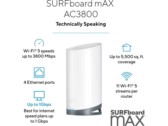 - The SURFboard mAX Mesh Difference: As you move around your house or you launch that streaming service - the mesh network will adjust to optimize your experience. Bursting with premium components & technology - we invested in Tri-band (2.4GHz/5GHz/5GHz High) design and Wi-Fi mesh algorithms that ensure your devices and your network are always operating at peak peformance. Significantly reduce buffering, delays on your devices and high ping rate for gamers. Our unique approach to maintain a 1Gbps connection within your system enables you enjoy true gigabit speeds throughout your home.