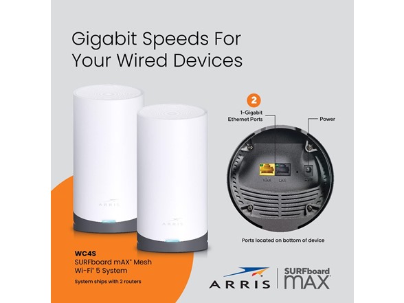 (1) ARRIS SURFboard mAX Tri-Band Mesh System WC4S | AC3800 Wi-Fi Speed up to 3.8 Gbps | Coverage 5500 sq ft |Alexa Support | 2 Year Warranty
