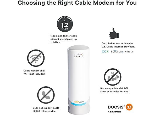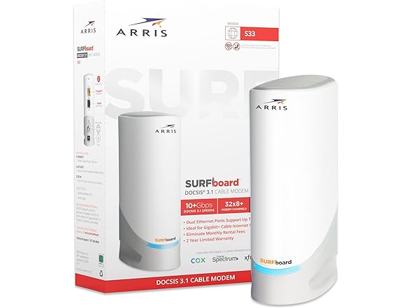 ARRIS Surfboard S33 DOCSIS 3.1 Multi-Gigabit Cable Modem, Approved for Comcast Xfinity, Cox, Spectrum & More, 1 & 2.5 Gbps Ports, 2.5 Gbps Max Internet Speeds, 4 OFDM Channels