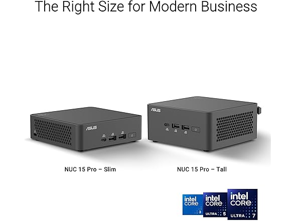 ASUS NUC 15 Pro Slim Full System Mini PC with Intel Series 2 Core 7 240H (NPU Support for AI Workloads), 16GB DDR5-5600 MHz RAM, 512GB PCIe G4x4 NVMe SSD, Thunderbolt™ 4, WiFi 7 & Bluetooth 5.4, Toolless Chassis Access, VESA Mount included