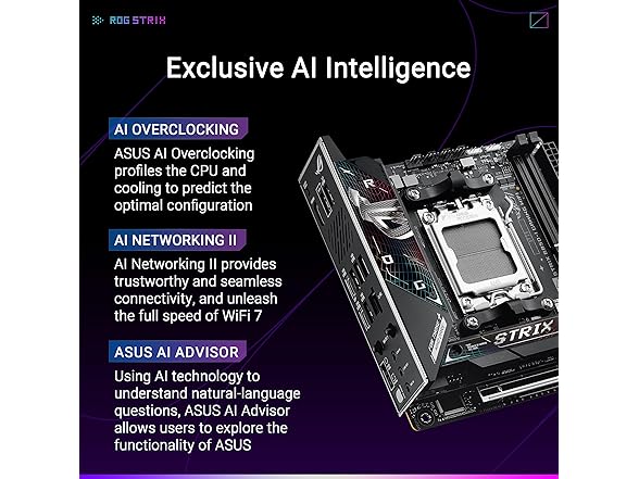 - Intelligent control: AI ASUS, AI Networking II, AI Advisor and AEMP overclocking to simplify setup and improve performance