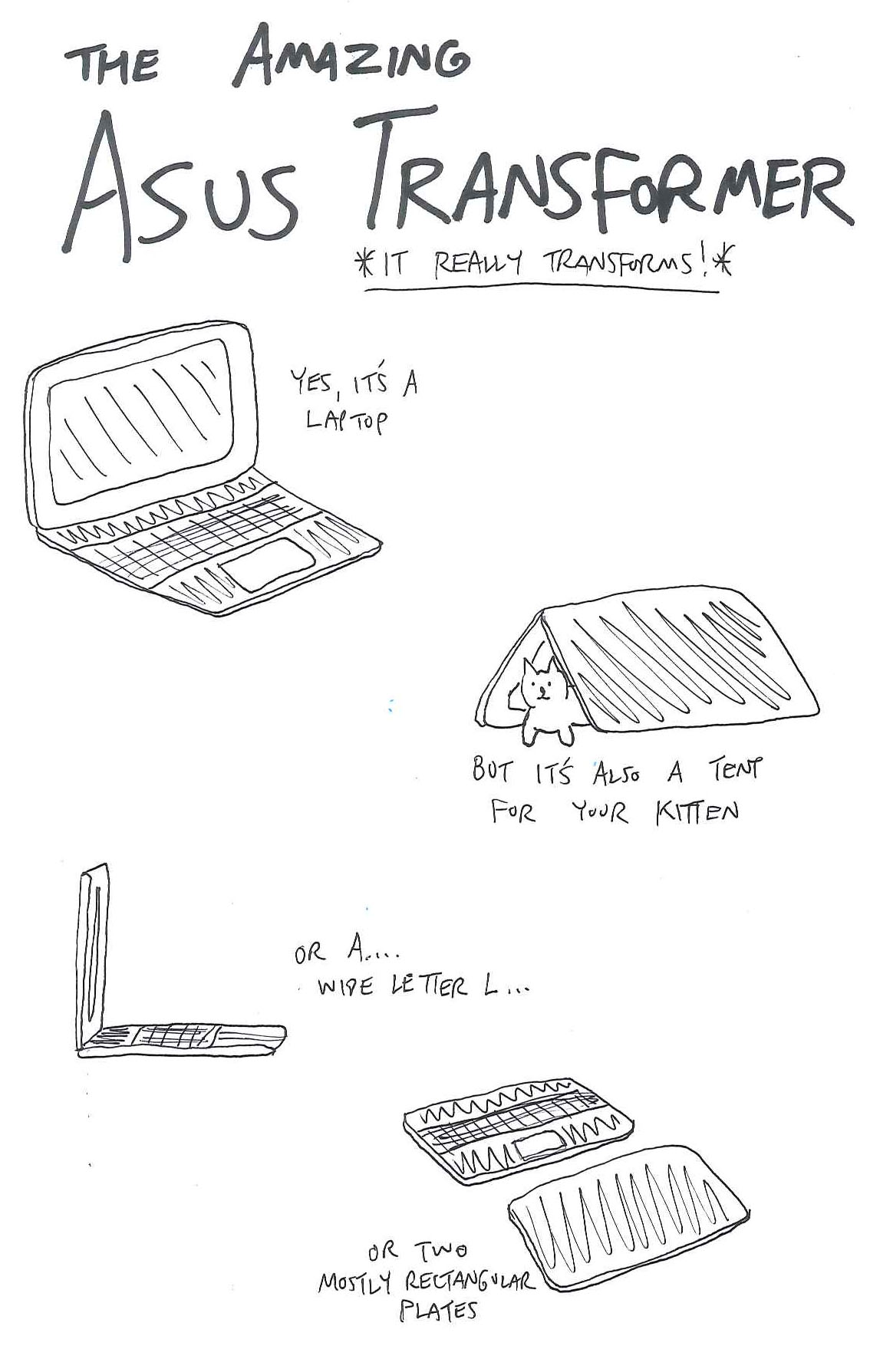 ASUS Transformer Book T100 is two computers in one, featuring a 10.1-inch ultraportable and a detachable HD display that can be used as a standalone Windows 8.1 tablet. With a sleek design and a durable finish, the Transformer Book T100 is not only one of the lightest ultraportables currently available at just 2.4lbs, but also one of the lightest 10-inch tablets around, at 1.2 lbs.