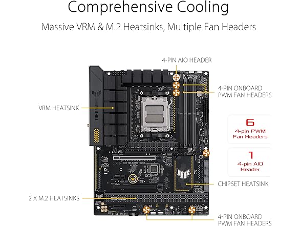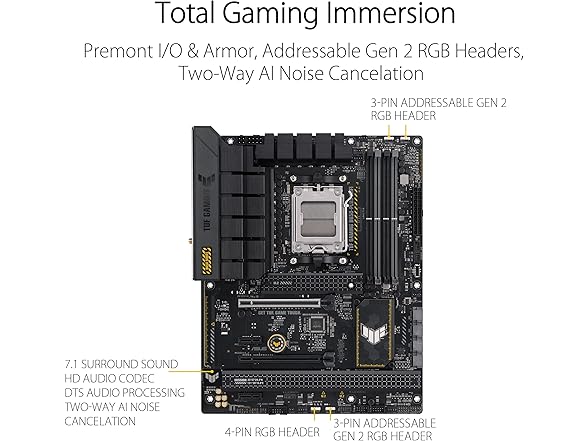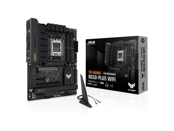 ASUS TUF GAMING B650-PLUS WIFI takes all the essential elements of the latest AM5 Socket for AMD Ryzen™ Desktop Processors and combines them with game-ready features and proven durability. Engineered with military-grade components, an upgraded power solution and a comprehensive cooling system, this motherboard goes beyond expectations with rock-solid and stable performance for marathon gaming. TUF GAMING motherboards also undergo rigorous endurance testing to ensure that they can handle conditions where others may fail. Aesthetically, this model incorporates rugged off-black and geometric design elements to reflect the dependability and stability that defines the TUF GAMING series. This platform delivers the power and connectivity that advanced AI PC applications demand.