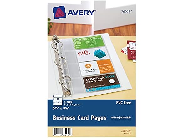 Avery Clear Business Card Organizer Pages for 5.5" x 8.5" Mini Binders, Pack of 5 Holds 40 Cards Total (76025)