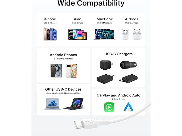 - UNIVERSAL COMPATIBILITY: Works seamlessly with iPhone 15 and later, Samsung S25 and earlier, iPad Pro, MacBooks, Chromebooks, and other USB C devices, ensuring fast, reliable charging and data transfer; also compatible with Apple CarPlay and Android Auto.