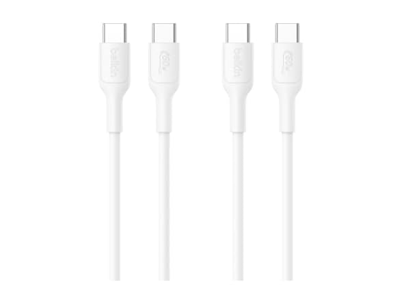 Belkin Eco USB-C to USB-C Cable 3.3ft, 60W - Soft, Braided, Flexible Fast Charging Cable, Type C Charger Cord for iPhone 17, iPhone 16, Galaxy S25, Pixel 9, MacBook, iPad Pro, & More - White (2 Pack)