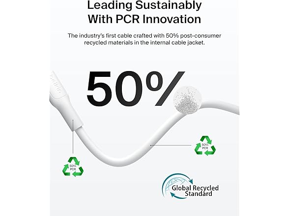 - SUPERIOR DURABILITY: Our soft, flexible cable is made with an extra durable 95% PCR PET braided exterior with 50% PCR PET head and internal jacket, tested to survive over 30,000 bends and 10,000 plug-ins*** for up to 30x the durability of most cables.