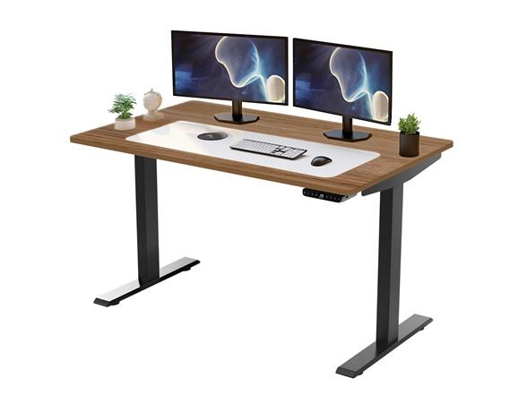 Rise Up Standing Desk with Black Frame and 48x30" Teak Desktop. Adjustable height desk with memory