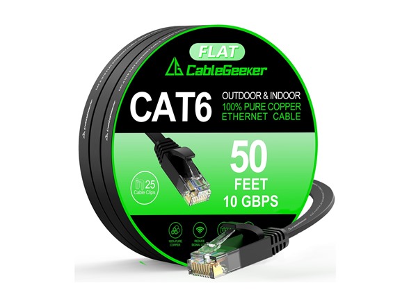 (1) CableGeeker Cat 6 Ethernet Cable, Indoor&Outdoor, High Speed 10Gbps Flat Internet Network Cable, Cat6 Ethernet Patch Cable Long, Computer LAN Cable with Free Clips & Straps for Router, Modem, PS4/5