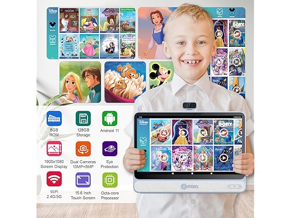 - EDUCATIONAL KIDS TABLET - Contixo A3 kids tablet is equipped with Octa-core 2.0GHz MT8183, Android 11 OS operating system, 15.6 inch 1920x1080 IPS HD display, 8GB RAM and 128GB ROM. Our tablet for kids is designed to provide a safe environment to learning and entertainment. More storage for storing photos, music and videos, learning resources.