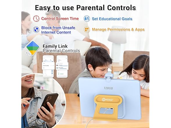 - EASY PARENTAL CONTROLS & FULL ACCESS TO GOOGLE - Kids Place allows you to control screen time and kid friendly contents. Filter feature can ensure your kids see filtered websites, apps, video channels etc. This app has no ads and no in-app purchases without your permission. Contixo A3 is also a fully functional Android Tablet. With GMS Certified, you have full access to the latest Google Service such as Gmail, YouTube Kids, Netflix and many more apps and contents.