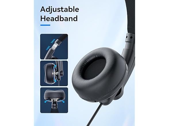 【All-Day Comfort】The lightweight design of 0.27 lb (±0.01 lb) can reduce the feeling of pressure on the top of the head, designed for all-day comfort using. With an adjustable headband and 10° adjustment angle of the earpads, this headset can be adjusted to fit most head sizes.