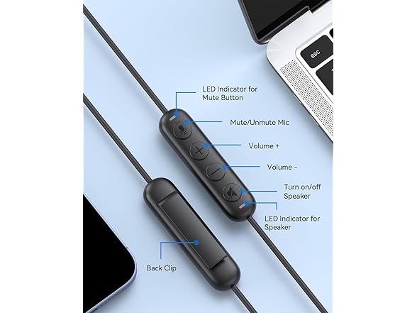 【In-Line Controls】The headphone is designed for multiple use, with USB In-line audio volume control, mic mute & speaker mute. Adjust the volume and mute your mic via the headset cable.