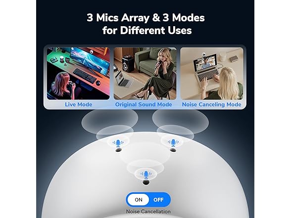 - Audio Purity, 3 Mics Precision with 3 Sound Modes - Piko+ delivers pure audio with 3 mics array and 3 sound modes. Noise Canceling Mode combines gain control with steady-and-sudden noise blocking in busy environments, ideal for content creation. Original Sound Mode captures authentic sounds and preserves ambient sounds, which is recommended for quiet spaces like bedrooms. Live Mode adjusts gain and reduces noise like air conditioning, ensuring clear audio for live gaming and singing.