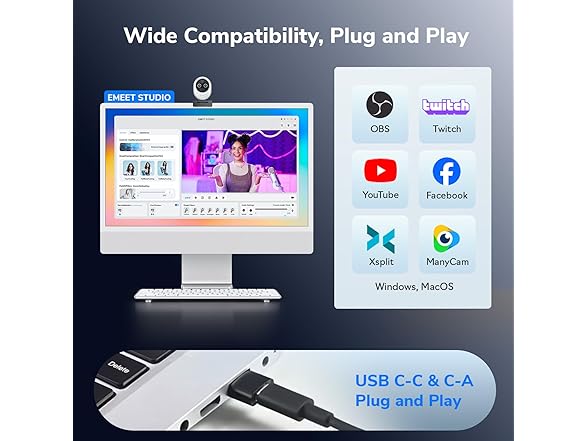 - Functional Harmony, Broad Compatibility - Compatible with Windows and MacOS, Piko+ webcam with microphone integrates seamlessly with OBS, Twitch, YouTube, and etc, delivering a smooth experience across platforms. It supports USB C-C & C-A with an included adapter for flexible connectivity, ensuring seamless use across laptops, desktops, and streaming setup. It adapts easily to beauty, gaming, and singing livestreams, remote work, online teaching, stylish desk setups, or as a high-aesthetic gift.