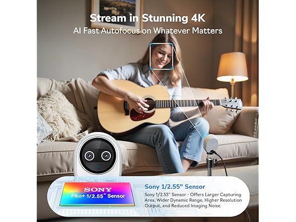 - Visual Excellence, Revolutionary Dual-Camera Innovation - EMEET Piko+, the world's 1st Dual-Camera AI-Powered 4K Webcam, elevates your 4K experience. Its 4K main camera with a 1/2.55'' Sony sensor delivers ultra-clear visuals, while the AI-Assisted camera ensures rapid autofocus and precise face lighting. Piko+ excels in low-light conditions with superior face and background recognition, outperforming competitors and making it the ideal choice for content creators, professionals, and educators.