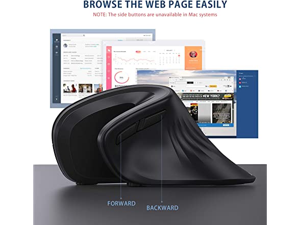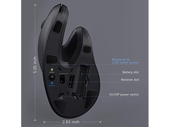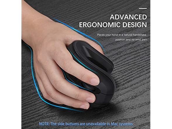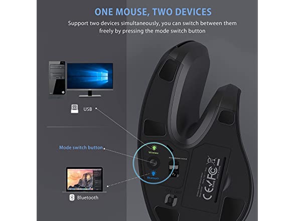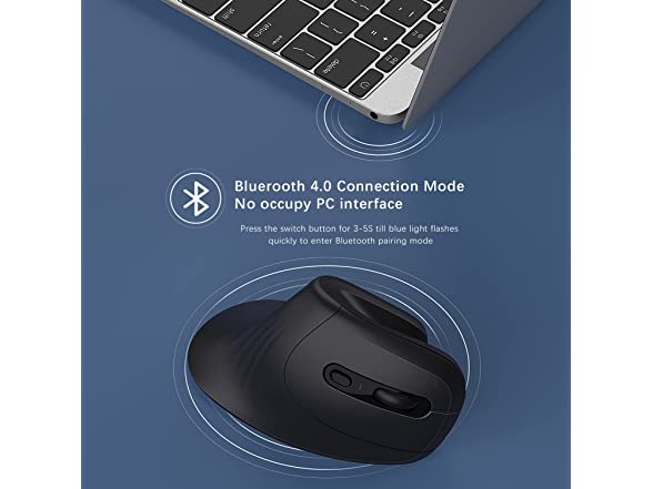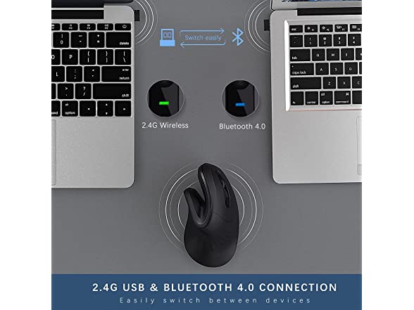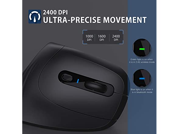 Ergonomic Wireless Mouse, Bluetooth Vertical Mouse 2.4G Optical Vertical Mice Bluetooth 4.0 Wireless Mice with Adjustable DPI 1000/1600/2400 for Laptop, Desktop, PC, MacBook - Black