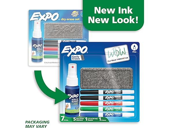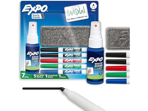 EXPO Dry Erase Markers Kit, Fine Tip, Assorted Colors, Eraser, Spray Cleaner, 7 Count