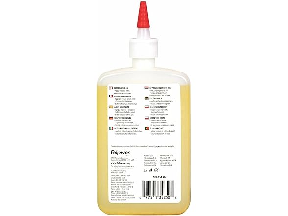Fellowes Powershred Performance Shredder Oil, 12 oz. Extended Nozzle Bottle (35250) (Pack of 1)