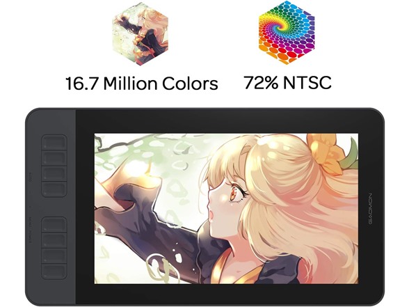 - Vivid Color Perfomance: A combination of 72% NTSC (100% SRGB) color gamut and 16.7 million display colors enables to present your drawings in a more lifelike way with smoother color gradation on this drawing tablet for pc.