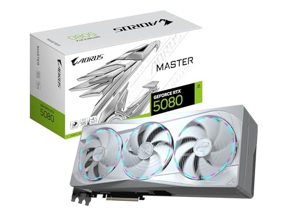 Gigabyte AORUS GeForce RTX 5080 Master ICE 16G Graphics Card - 16GB GDDR7, 256 Bit, PCI-E 5.0, 2805MHz Core Clock, 3 x DP 2.1a, 1 x HDMI 2.1b, NVIDIA DLSS 4, GV-N5080AORUSM ICE-16GD