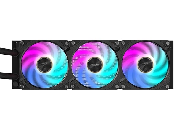 - The water block and fan feature gradient lighting, and the ARGB fan lighting can be synchronized with other AORUS devices through GCC (GIGABYTE Control Center)
