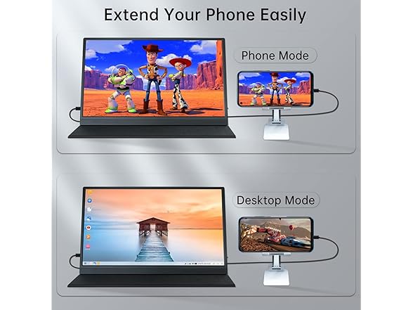 - 【Plug and Play Second Monitor】Hamtysan usb portable monitor has exclusive dual type-c full features ports- Just connect your device (full features support) through a USB C 3.0 cable to make the monitor works without power. It can definitely save your time and improve your efficiency. You can also connect it to your device via an HDMI cable and power cable, which are also come in the package. No driver required.