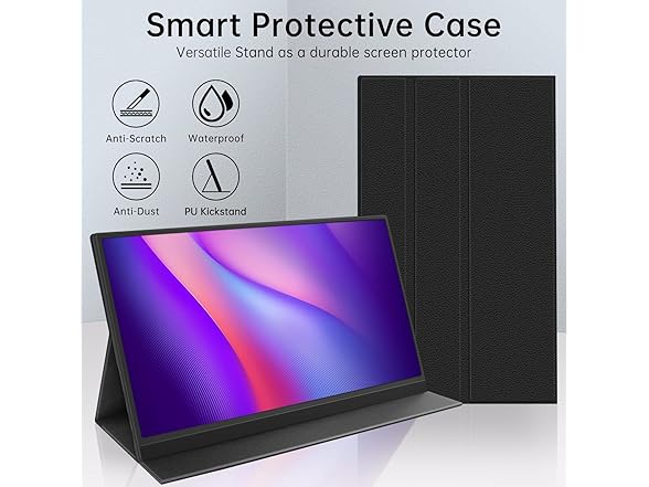- 【Lightweight for Carry】With a slim 0.3-inch profile and just 1.76 pounds, Hamtysan 15.6 inch portable monitor is ideal for travel, play outside and anywhere you'd like to use an external monitor, put it in your backpack and go. Also, the cover case is made of PU leather to provide excellent protection for the entire monitor and can be folded into different positions to create a stand. The protective film prevents the screen from being scratched.