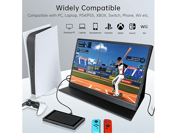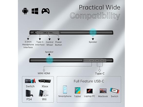 - 【Wide Compatible Monitor】Hamtysan portable computer monitor can easily connect laptop, desktop, phones, tablet, Xbox, PS3 /PS4 /PS5, Switches, etc via Type-c or Mini HDMI port, which strengthened the ports' stability and solved the multi-wire winding problem, equipped with 3.5mm audio inputs. great ideal for extending your screen or playing games on business trip, travel, or home entertainment.