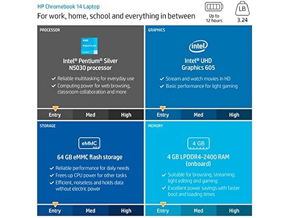 HP 14" Chromebook - Intel Pentium N5000 - 4GB - 64GB - Silver - 14A-NA0131WM (Refurbished)