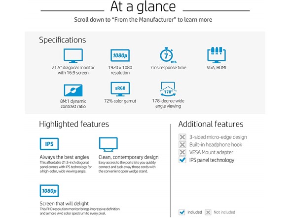HP 22CWA 21.5" Full HD Display