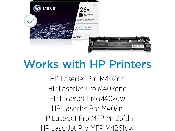 - This cartridge works with: HP LaserJet Pro M402dn, M402dne, M402dw, M402n; HP LaserJet Pro MFP M426fdn, M426fdw
