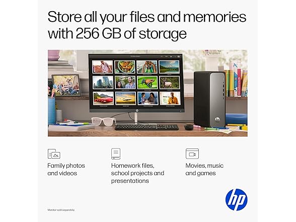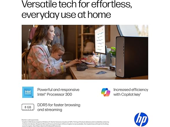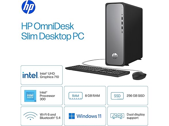 HP OmniDesk Slim S03-0010 Desktop PC Intel 300 8GB RAM 256GB SSD Windows 11 Home, Meteor Silver