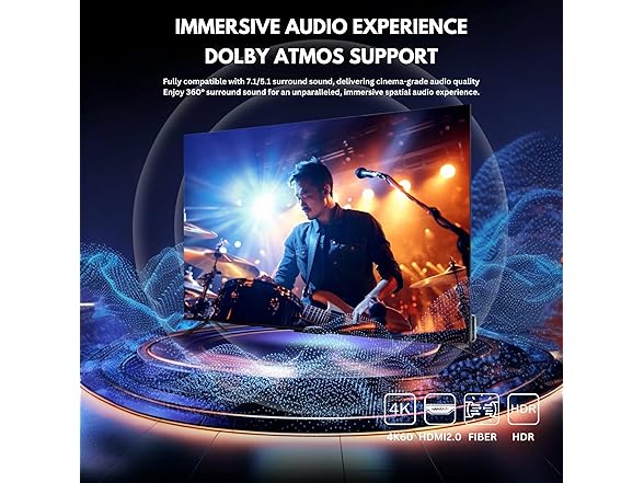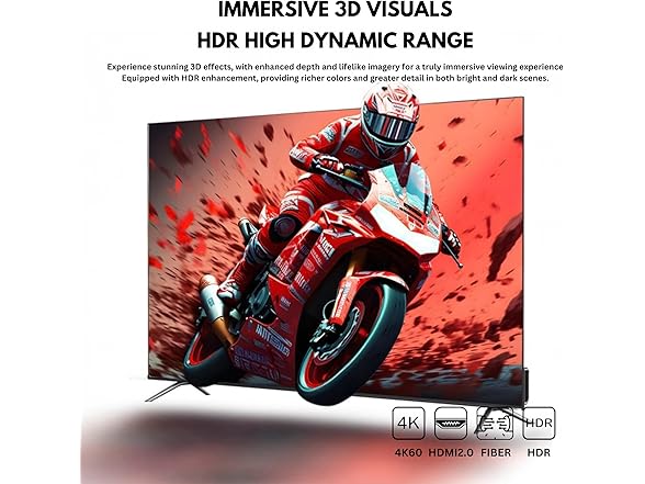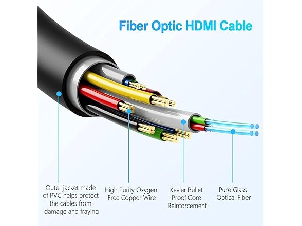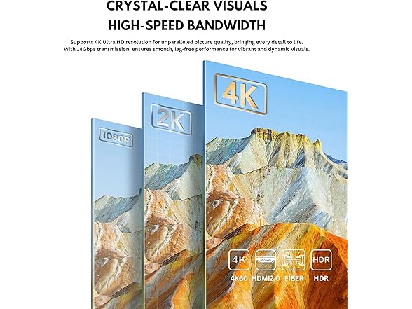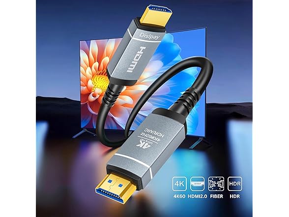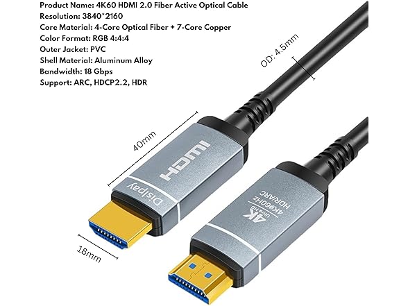 HDMI 2.0 Fiber Optic Cable, 4K@60Hz 4:4:4 18Gbps Ultra High Speed AOC Cable with HDR10, ARC, HDCP2.2, Slim & Flexible Design, Plenum Rated for Home Theater, Gaming, and Professional Use (32ft/10m)