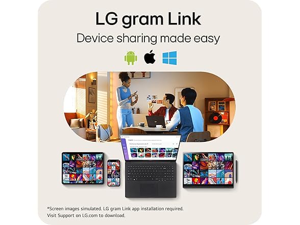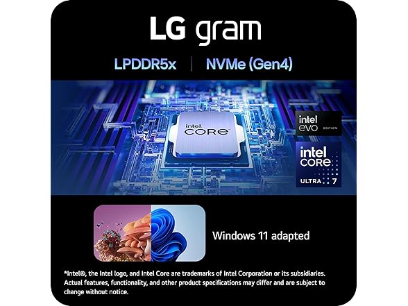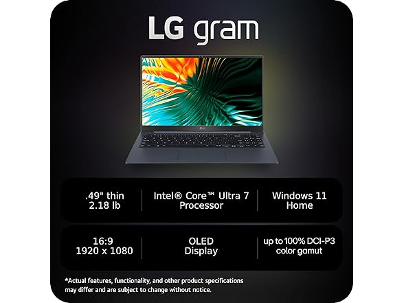 LG gram SuperSlim 15.6-inch Thin and Lightweight Laptop, Intel Evo Edition - Intel Core Ultra 7, 16GB RAM, 1TB SSD with OLED display. ¹Intel, the Intel logo, and Intel Core are trademarks of Intel Corporation or its subsidiaries. ²LG gram Link app installation required. Visit Support on LG.com to download. ³Dolby, Dolby Atmos and the double-D symbol are registered trademarks of Dolby Laboratories.