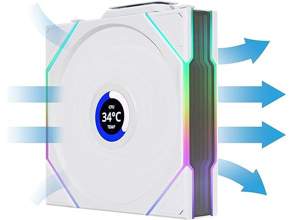 - High quality house fan 120mm: Durable black PC fan with PBT and PA66 plastic frame giving your PC RGB installation a modern look thanks to LCD and infinity mirror.