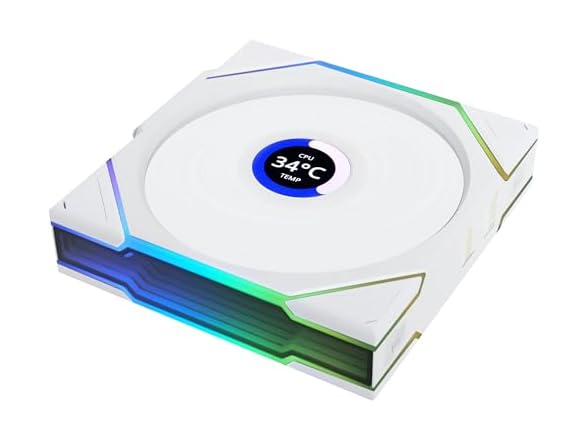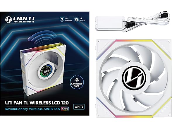 The Lian Li UNI TL Wireless LCD 120mm PWM fan in white gives you the perfect combination of powerful cooling and stylish cable management. With its robust plastic frame and wireless connection, this fan reduces the number of visible cables, allowing clean installation. Thanks to the 26 digital addressable RGB LEDs, the ARGB fan creates impressive lighting effects that can be fully controlled via L-Connect 3 software. With a maximum speed of 1900 rpm and a volume of only 27 dB (A), the PC fan provides a whisperingly quiet cooling performance. The impressive technical values - 105.34 m³/h flow volume and 2.9 mmH2O static pressure - ensure premium cooling for demanding installations. Rubber decoupling pads also ensure that fans PC vibration are reduced and your system remains quiet, even under high load. The fan blades of the Lian Li UNI TL Wireless LCD are designed in the normal direction, making it ideal as an outlet fan. This configuration ensures that the heated air is efficiently transported from the housing, which is essential for a well-cooled PC system. Please note that the ARGB fan needs a Lian Li L wireless controller to fully utilize its wireless features. This controller is sold separately. With the Lian Li UNI TL Wireless LCD PC fan 120 mm, you can not only get premium cooling, but also easy installation and complete control of the fan speed and lighting. Optimize your system and enjoy a whisper and stylish computing experience.