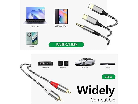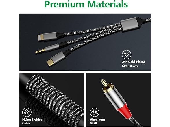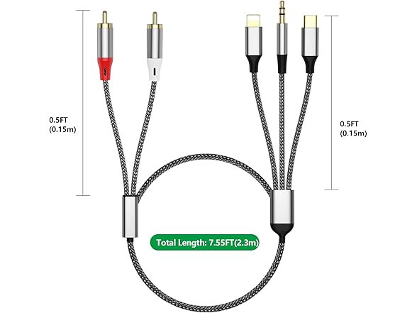 Liaoan Weiyu Three in one RCA Audio Cable, Used to Connect RCA Cable Adapter, USB C to 2 RCA Cable, 3.5mm AUX Audio Cable, Used for Power Amplifier, car, Home Theater, Speaker, TV (2.3M/7.55FT)