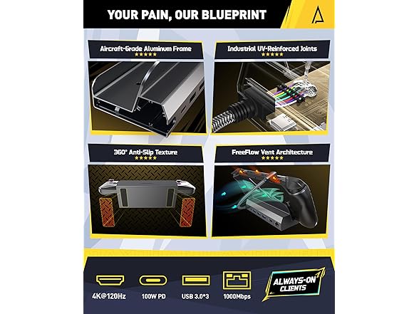 Maxonar Upgraded Docking Station 4K@120Hz for ROG Ally X/Steam Deck OLED/Legion Go (S) /MSI Claw, 6-in-1 Steam Deck Dock with HDMI 2.1, 3*USB-A 3.0, Gigabit Ethernet, 100W Charge for Steam Deck LCD